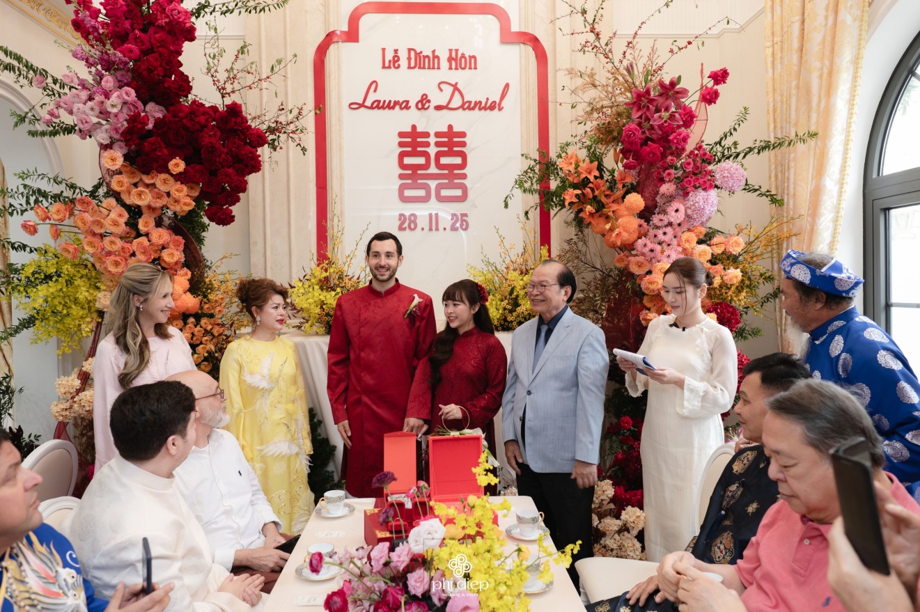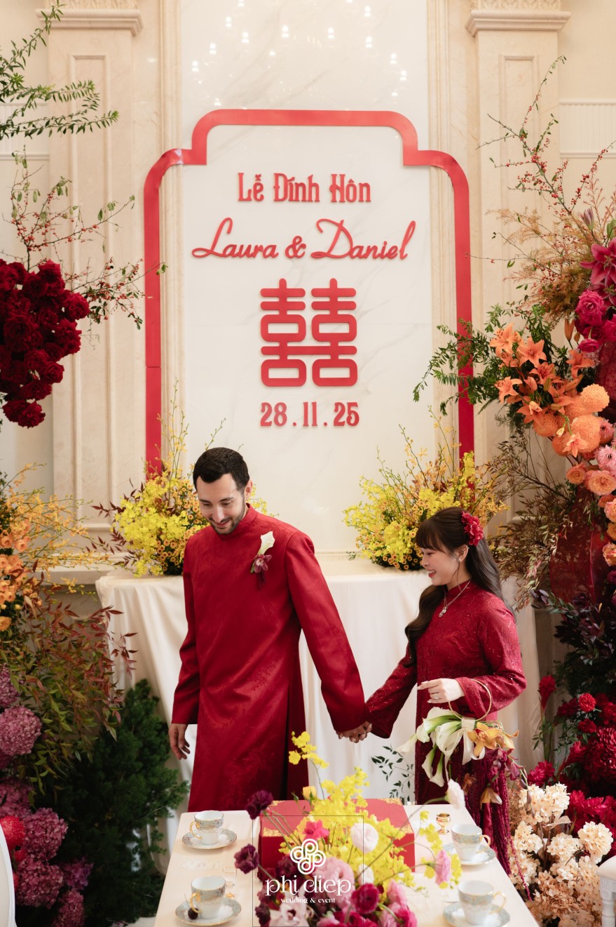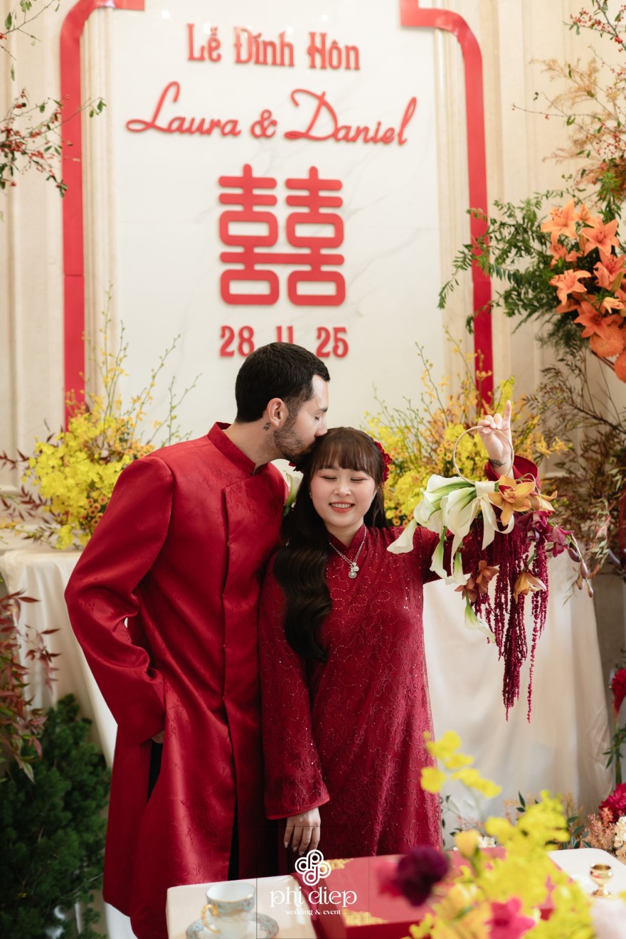 - Love story: “Đông Phương Duyên – Tây Phương Tình” không chỉ là một concept tên gọi, mà là cách họ kể câu chuyện của mình: Duyên từ phương Đông, nơi Laura lớn lên, nơi mỗi nghi lễ gia tiên đều gửi gắm một lời tri ân đến gia đình và cội nguồn. Tình từ phương Tây, nơi Daniel trưởng thành, tin rằng yêu thương là sự tự do lựa chọn và cùng nhau kiến tạo tương lai.
