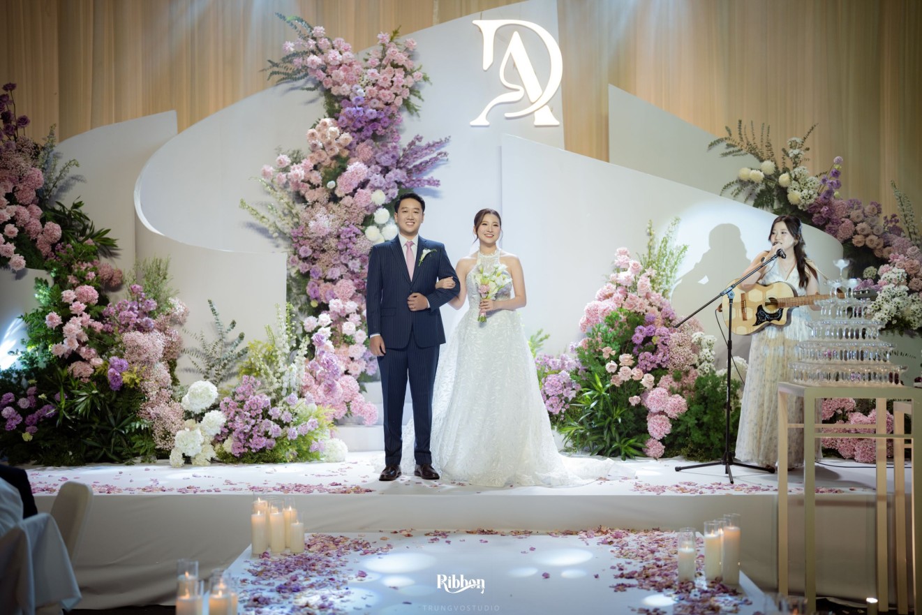 - Love story: A Jamais Nous “Mãi mãi là chúng ta” là một concept hôn lễ mang tinh thần Pháp lãng mạn, tinh tế và bền bỉ theo năm tháng. Không cần những tuyên ngôn lớn lao, concept này kể câu chuyện về hai con người chọn ở lại bên nhau rất lâu, rất chậm, và rất chắc chắn. Không gian được tạo hình mềm mại, những đường cong uyển chuyển hòa cùng sắc hoa pastel dịu dàng như chính nhịp yêu trưởng thành, nhẹ nhàng nhưng sâu sắc.