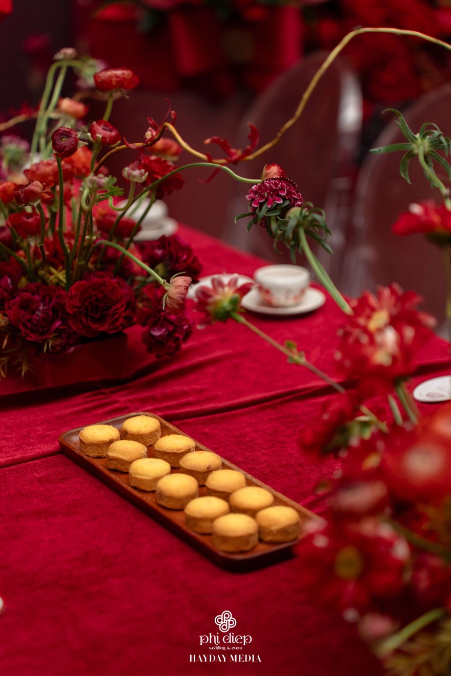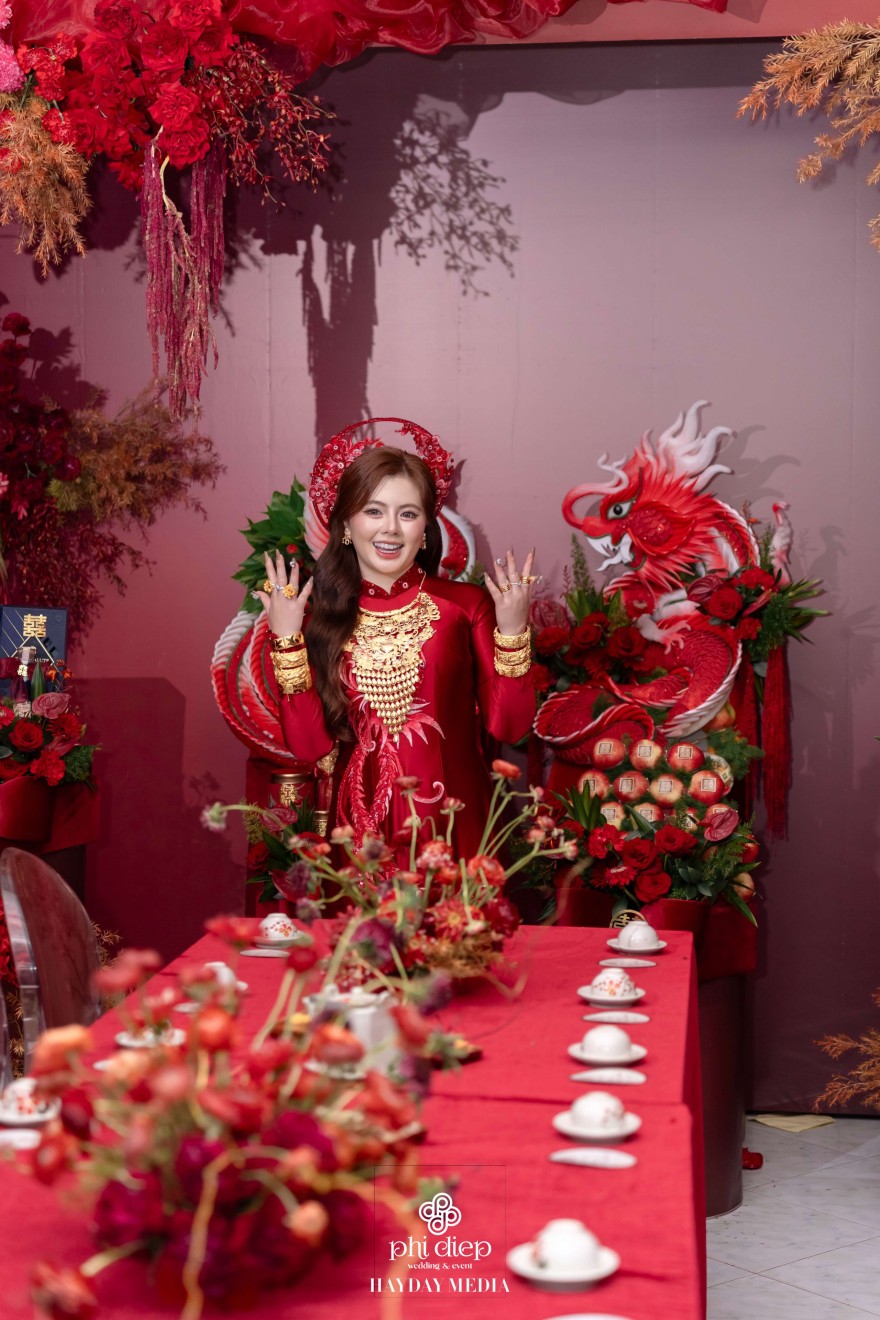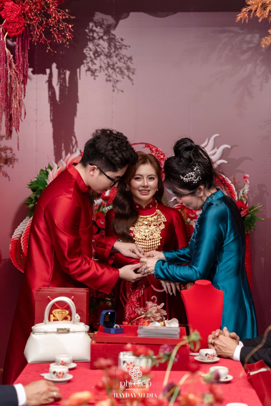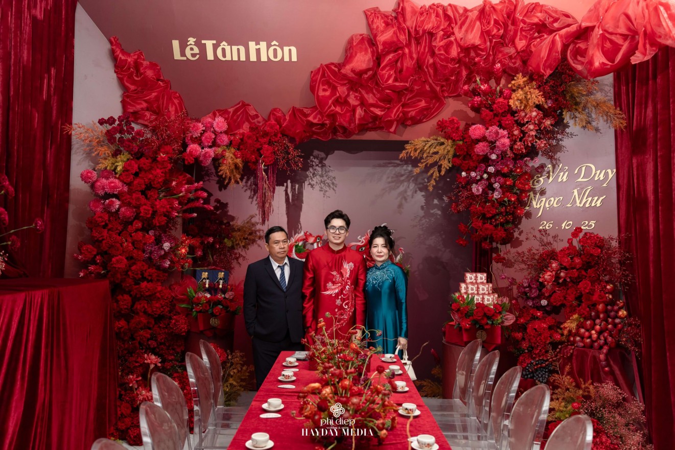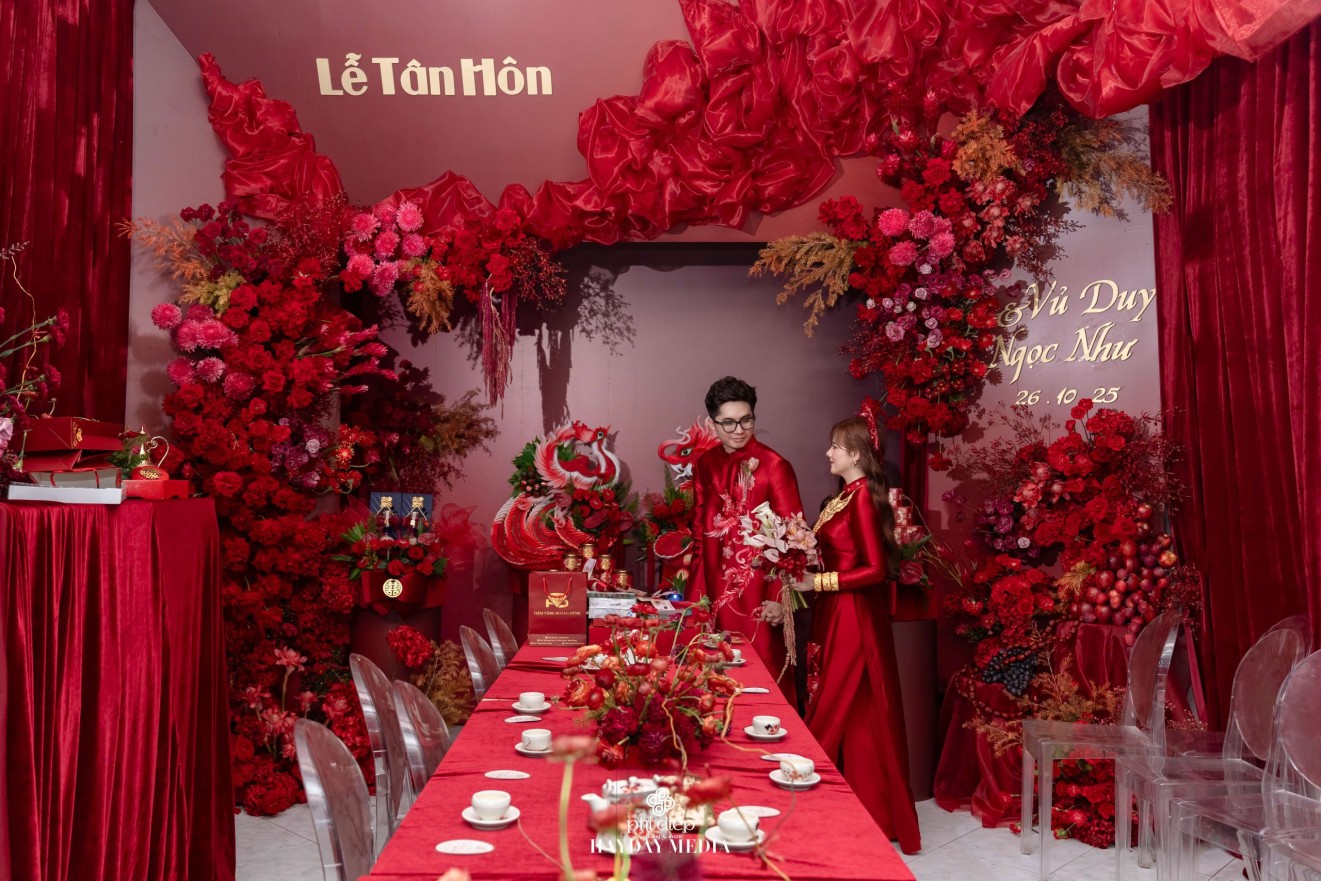- Love story: Lấy cảm hứng từ hình tượng Long Phụng, biểu tượng tối cao của hỷ sự trong văn hóa Việt, lễ gia tiên “Ngọc Ấn Vân Tiêu” là bản giao hưởng của uy nghi, phúc lành và sự hòa hợp âm dương dành riêng cho Vủ Duy & Ngọc Như. Trong điển tích xưa, “Ngọc Ấn” là dấu chứng thiêng liêng cho sự chính danh và phúc đức. Ở lễ gia tiên, hình ảnh ấy trở thành ẩn dụ cho mối duyên được chứng giám bởi tổ tiên, cho lời hẹn ước vĩnh cửu của đôi lứa. Còn “Vân Tiêu”, là mây lành tượng trưng cho điềm lành trời đất, nơi phúc khí quy tụ, nơi tình yêu được nâng đỡ bằng niềm tin và lòng thành kính.