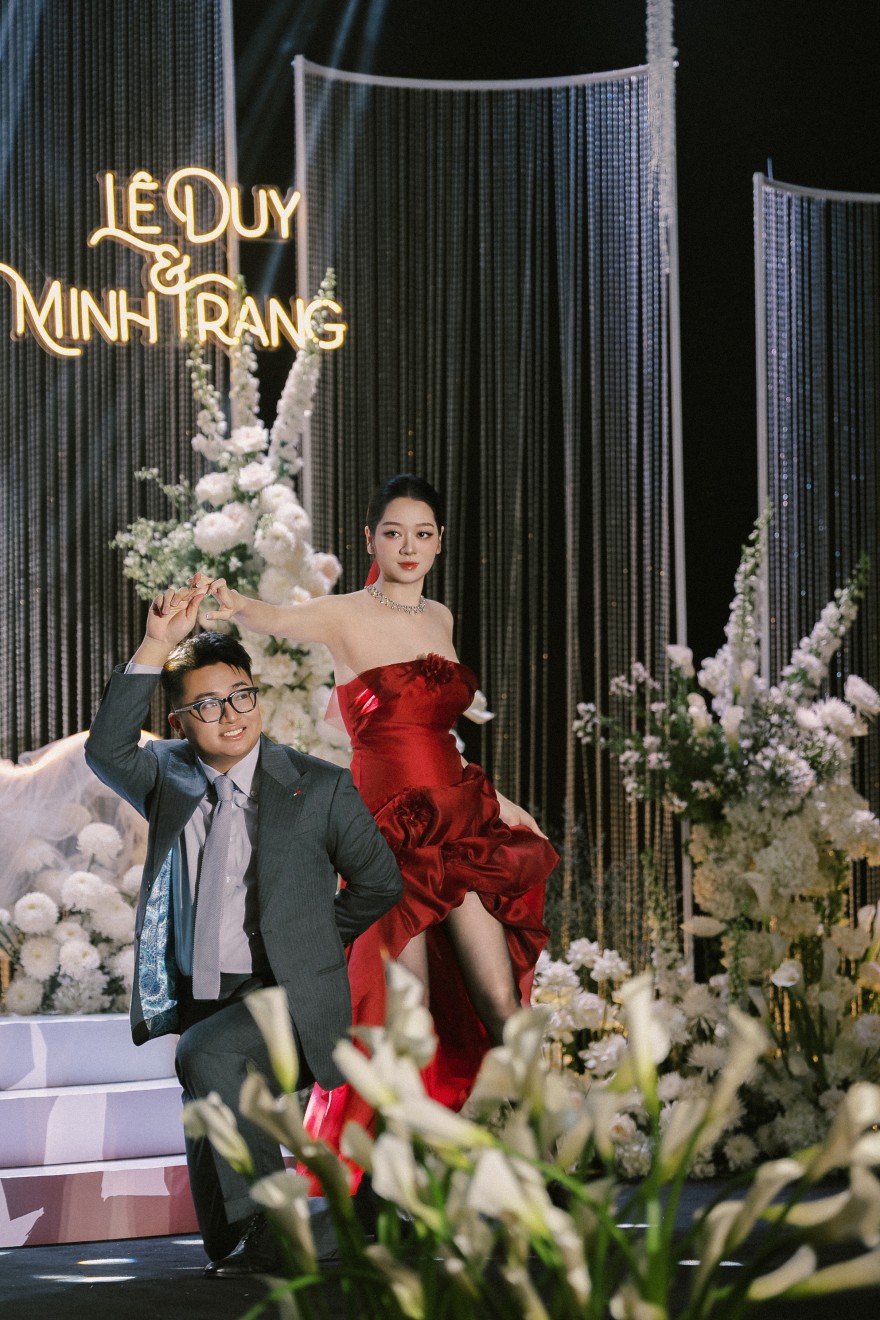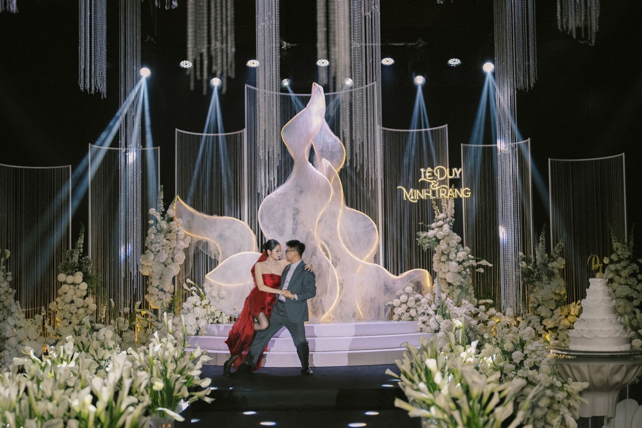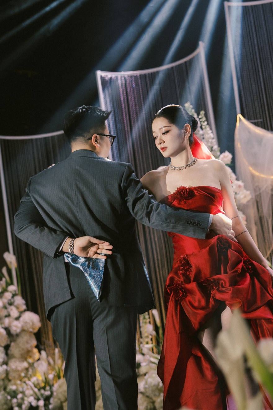 - Love story: Giữa bản hòa ca rực rỡ của ánh sáng – Chorus of Light, khoảnh khắc first look trở nên bừng sáng hơn bao giờ hết khi cô dâu xuất hiện với chiếc váy đỏ đặc biệt, kiêu hãnh và đầy cuốn hút. Từng bước nhảy như hòa quyện cùng những tia sáng lấp lánh, tạo nên một bức tranh cảm xúc vừa bay bổng vừa mãnh liệt – nơi cái nhìn đầu tiên không chỉ là cuộc gặp gỡ, mà là sự chạm đến trái tim sâu sắc.