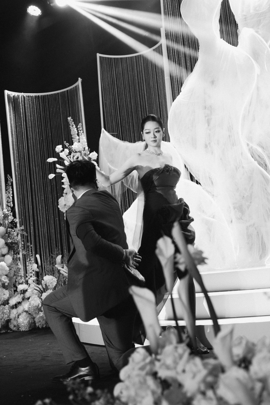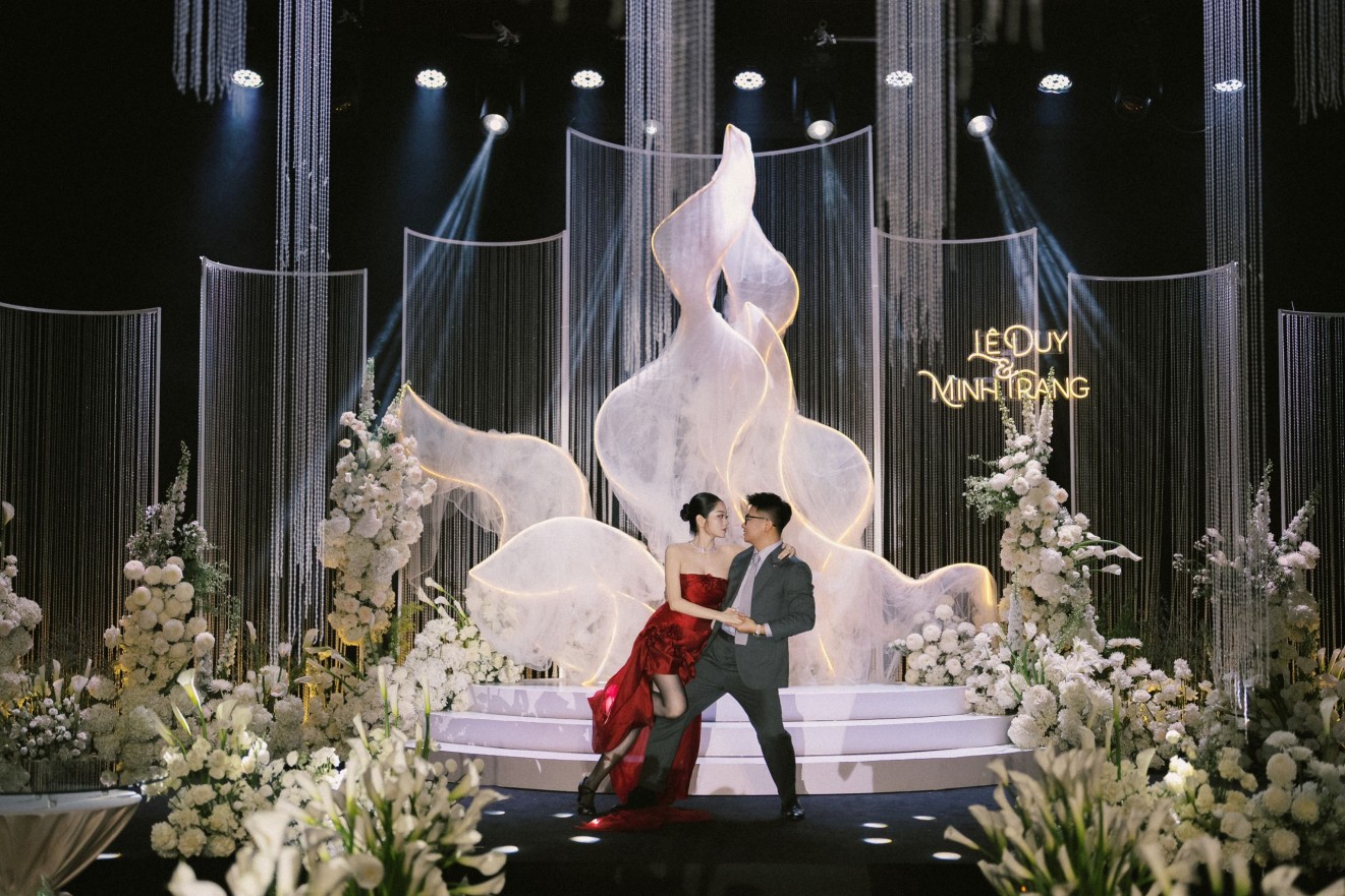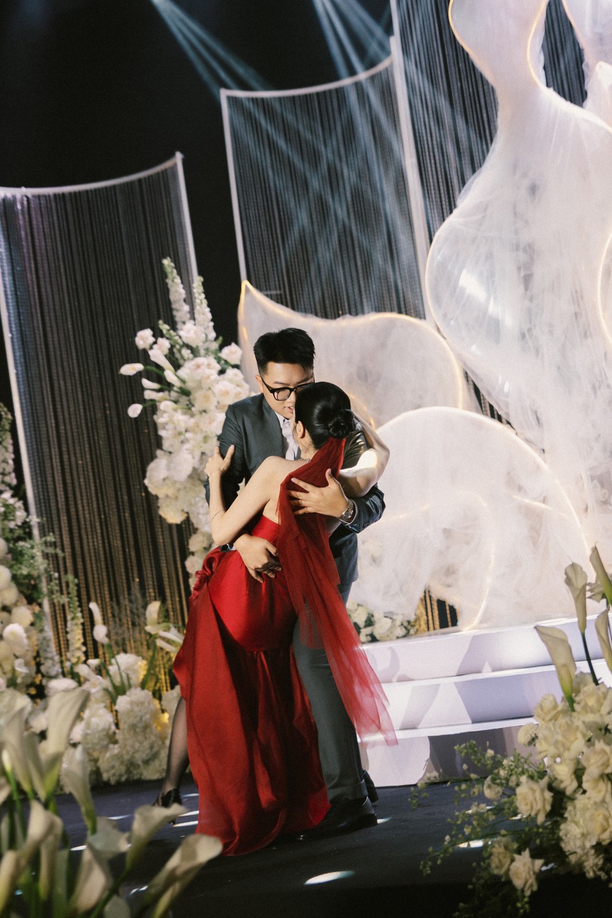 - Love story: Giữa bản hòa ca rực rỡ của ánh sáng – Chorus of Light, khoảnh khắc first look trở nên bừng sáng hơn bao giờ hết khi cô dâu xuất hiện với chiếc váy đỏ đặc biệt, kiêu hãnh và đầy cuốn hút. Từng bước nhảy như hòa quyện cùng những tia sáng lấp lánh, tạo nên một bức tranh cảm xúc vừa bay bổng vừa mãnh liệt – nơi cái nhìn đầu tiên không chỉ là cuộc gặp gỡ, mà là sự chạm đến trái tim sâu sắc.