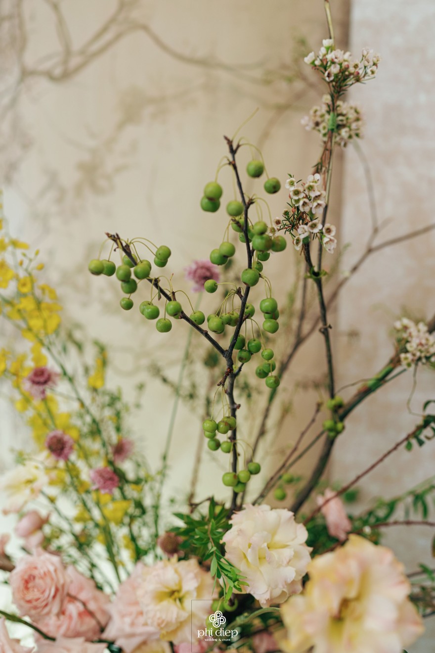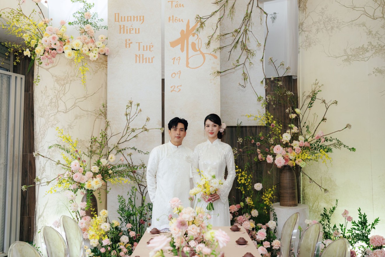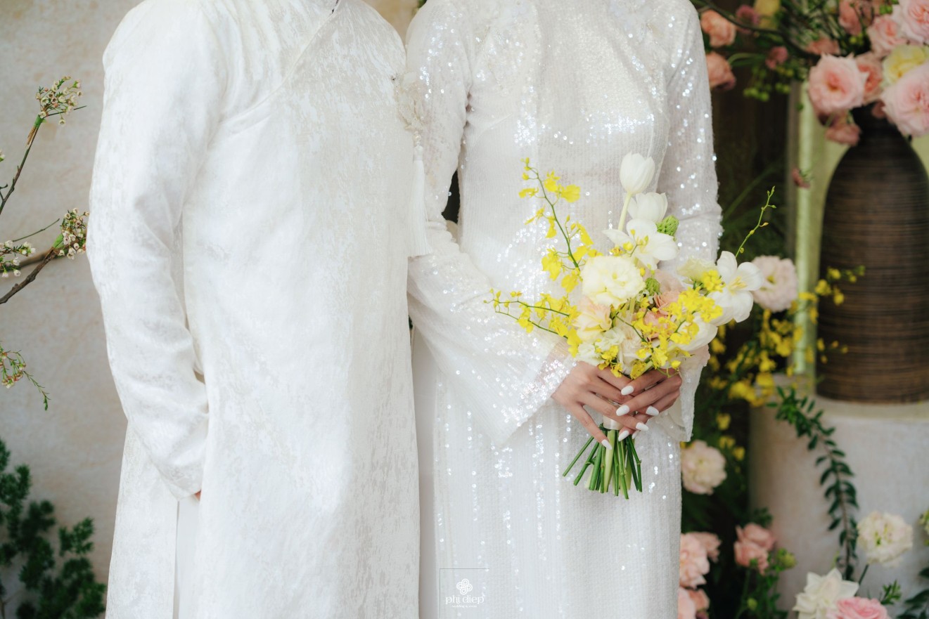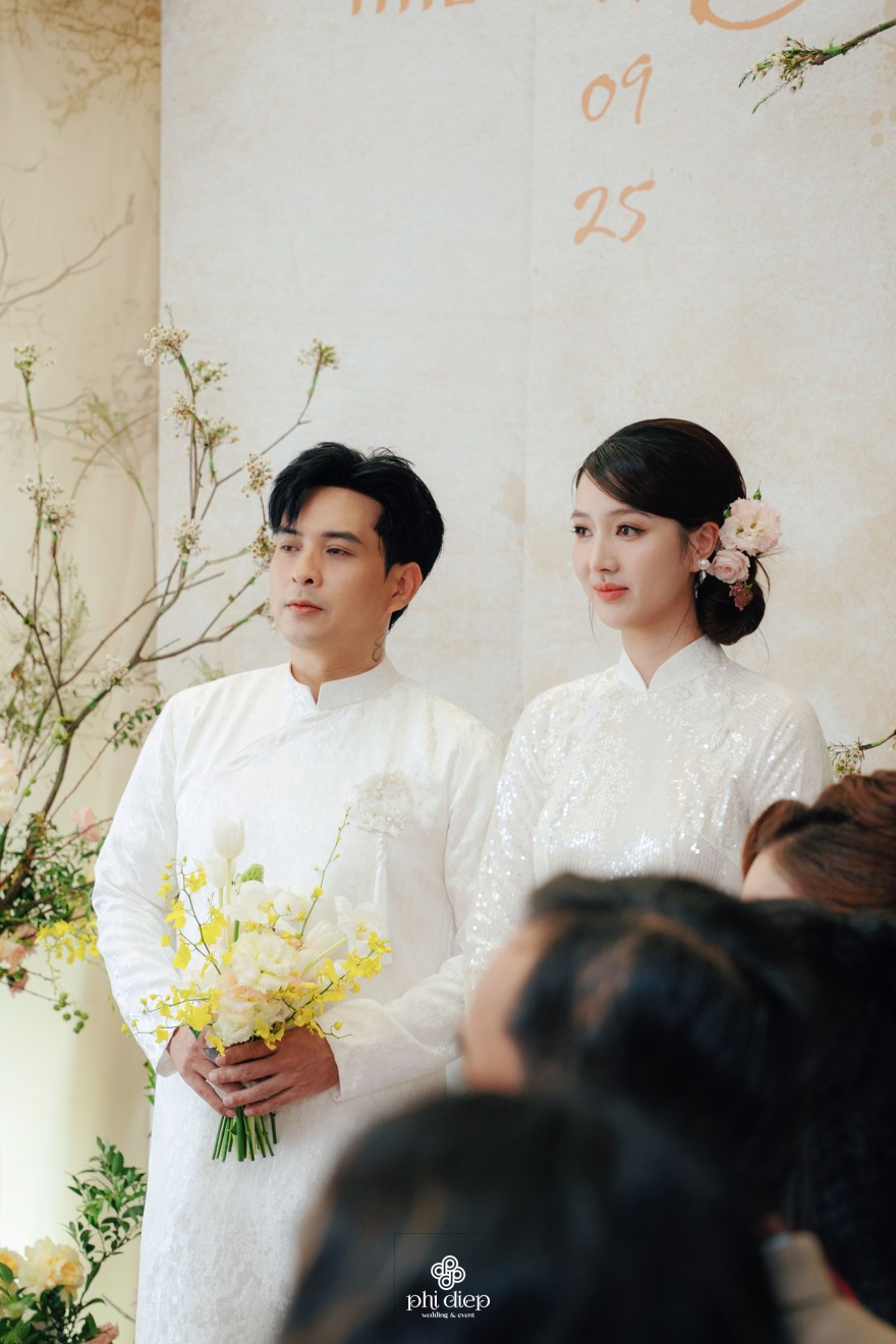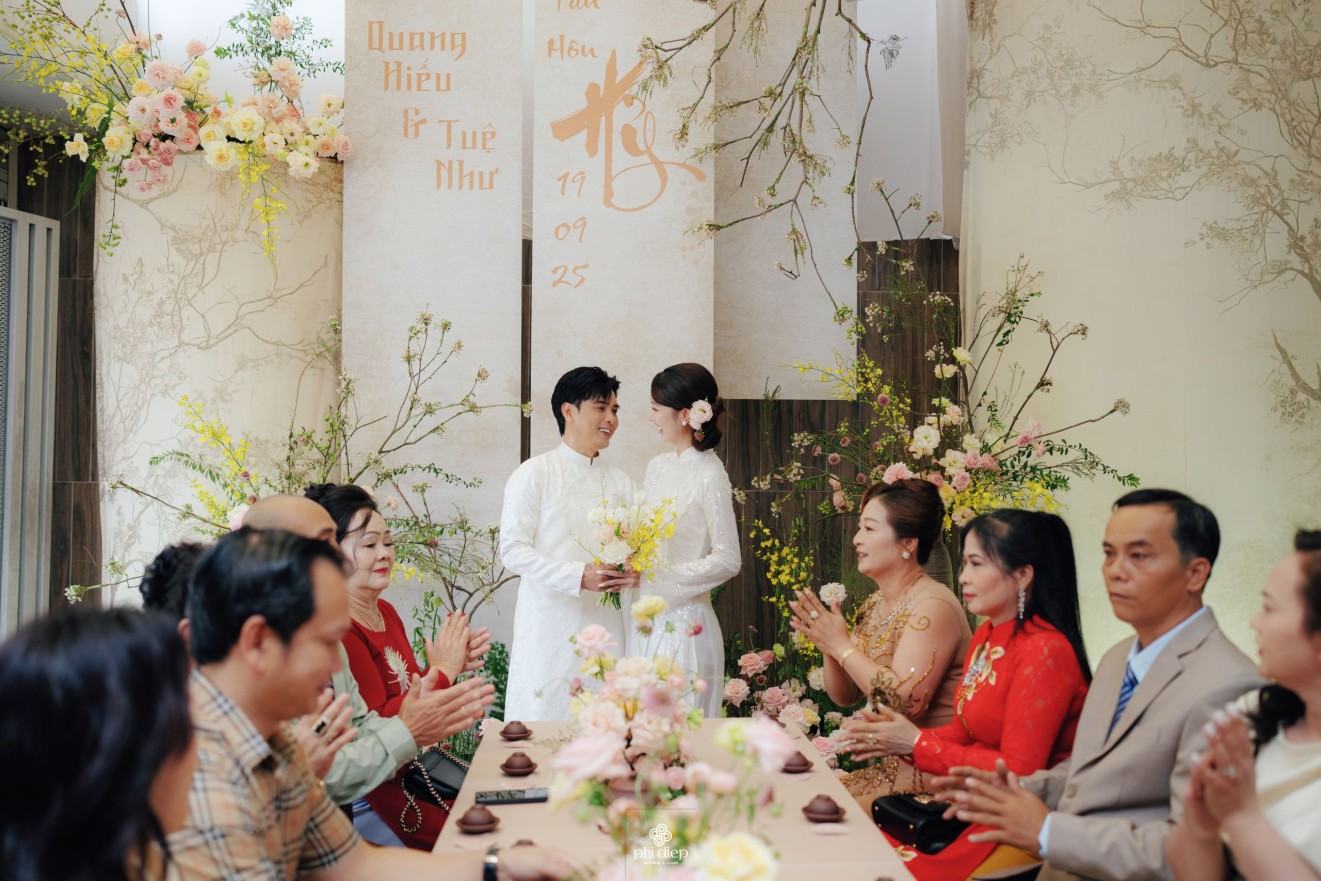 - Love story: Lễ tân hôn trọn vẹn và rực rỡ trong không gian chan chứa niềm vui, hạnh phúc. Mang trên mình tông màu vàng hồng làm chủ đạo, lễ cưới tựa như một bản tình ca ngọt ngào và lãng mạn. Hồng – sắc màu của yêu thương và mộng mơ, kết nối những trái tim đang chung nhịp đập. Vàng – biểu tượng của hạnh phúc, thịnh vượng và sự viên mãn. Trong văn hoá Á Đông, vàng còn là sắc màu của phú quý và trường thọ, như một lời chúc phúc gửi gắm đến đôi uyên ương về một tương lai bền lâu, rạng ngời.