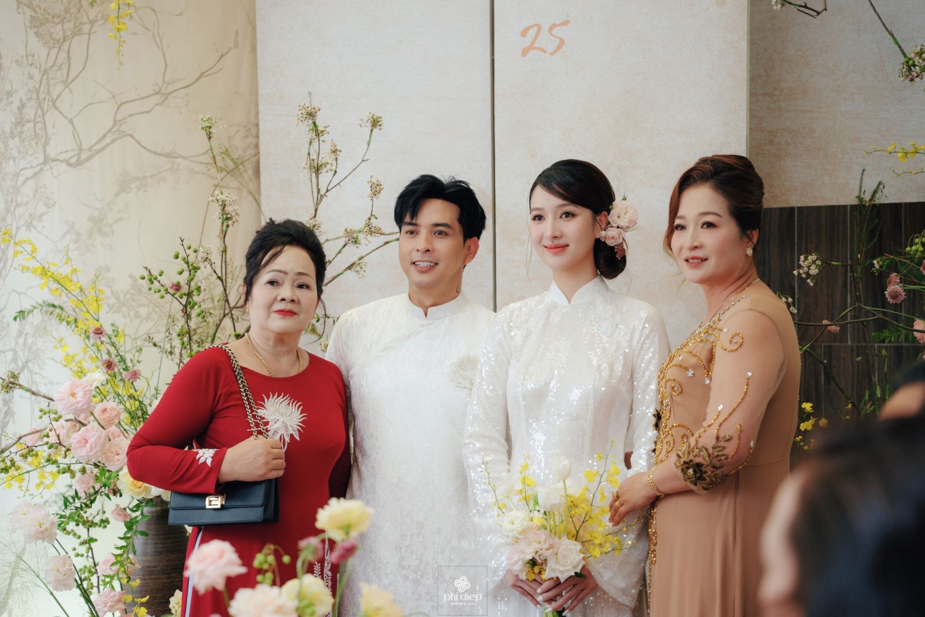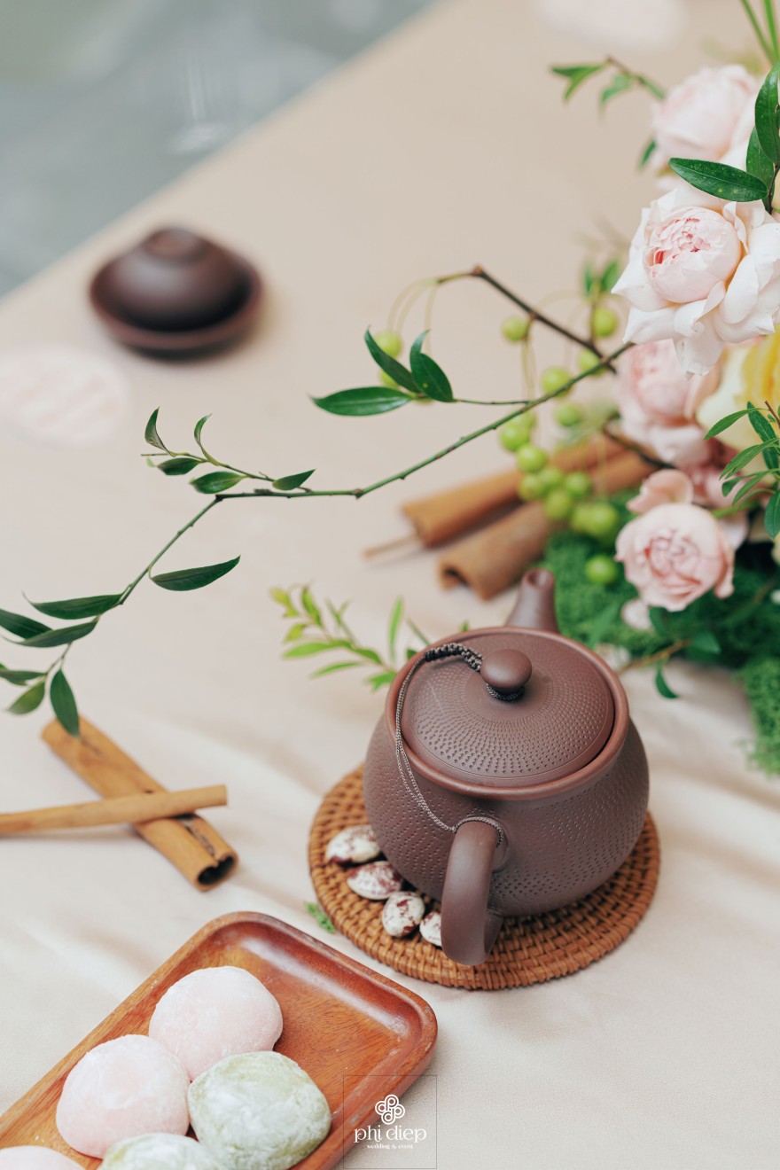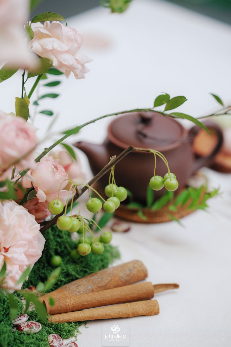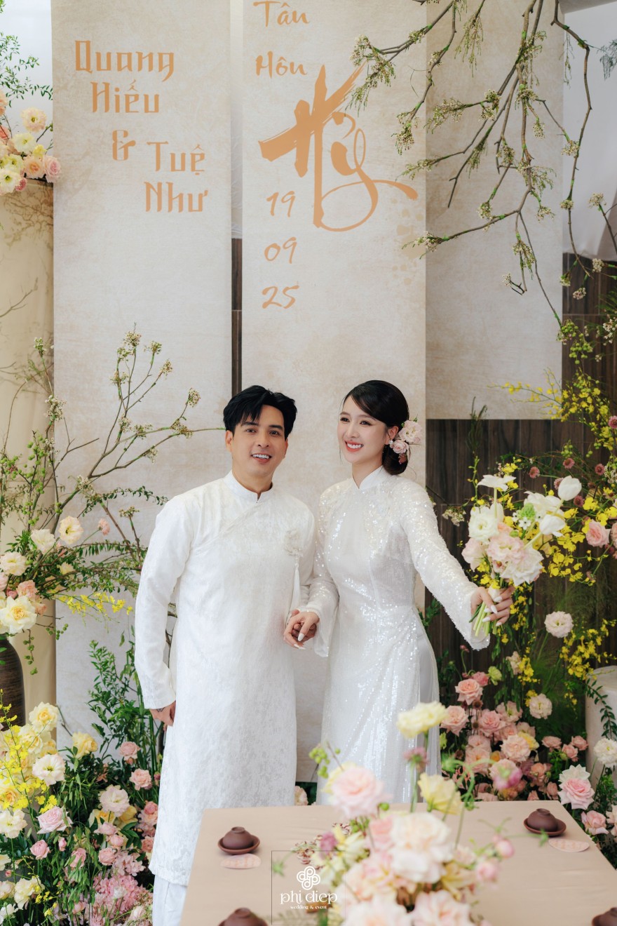 - Love story: Lễ tân hôn trọn vẹn và rực rỡ trong không gian chan chứa niềm vui, hạnh phúc. Mang trên mình tông màu vàng hồng làm chủ đạo, lễ cưới tựa như một bản tình ca ngọt ngào và lãng mạn. Hồng – sắc màu của yêu thương và mộng mơ, kết nối những trái tim đang chung nhịp đập. Vàng – biểu tượng của hạnh phúc, thịnh vượng và sự viên mãn. Trong văn hoá Á Đông, vàng còn là sắc màu của phú quý và trường thọ, như một lời chúc phúc gửi gắm đến đôi uyên ương về một tương lai bền lâu, rạng ngời.