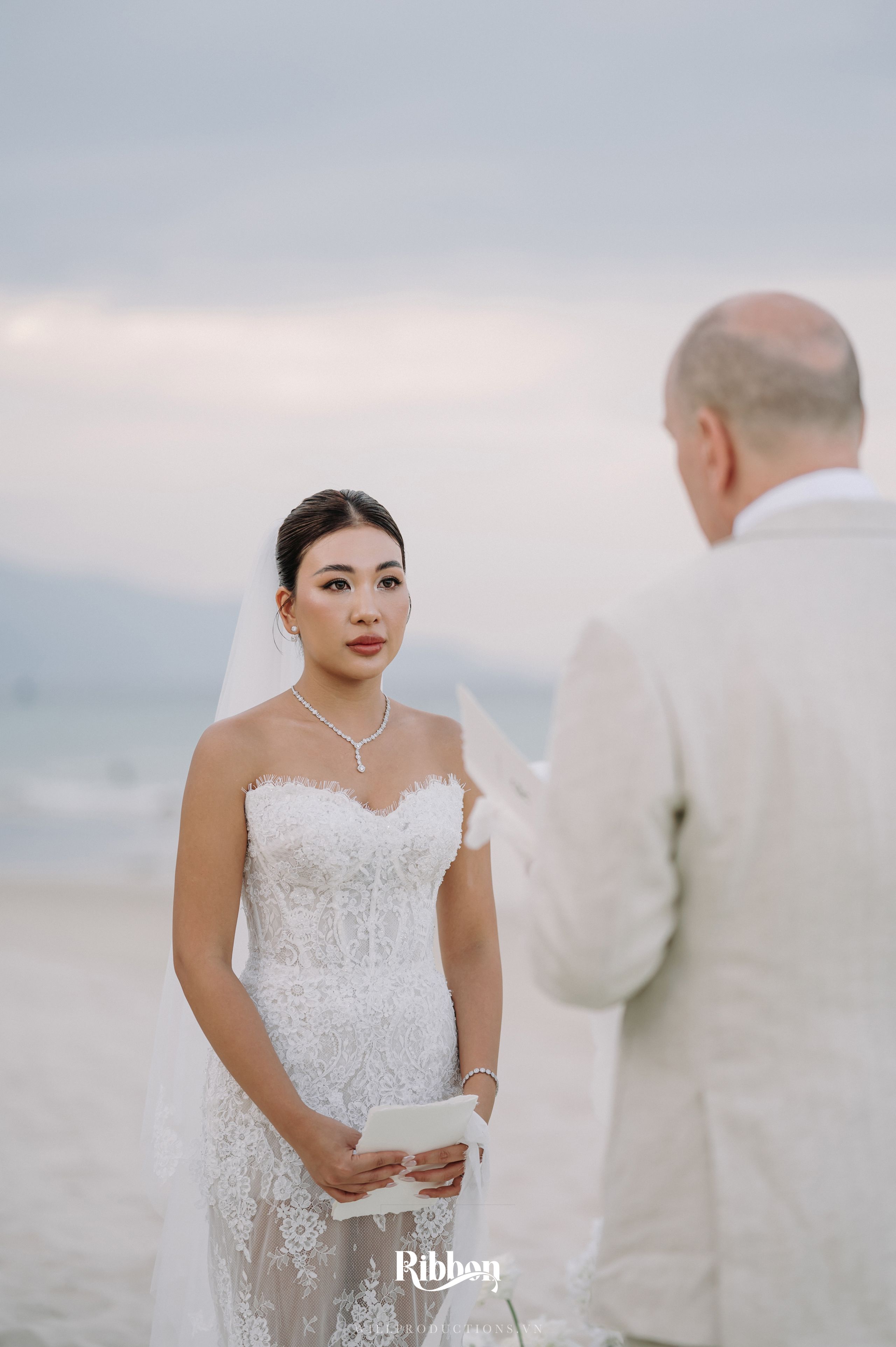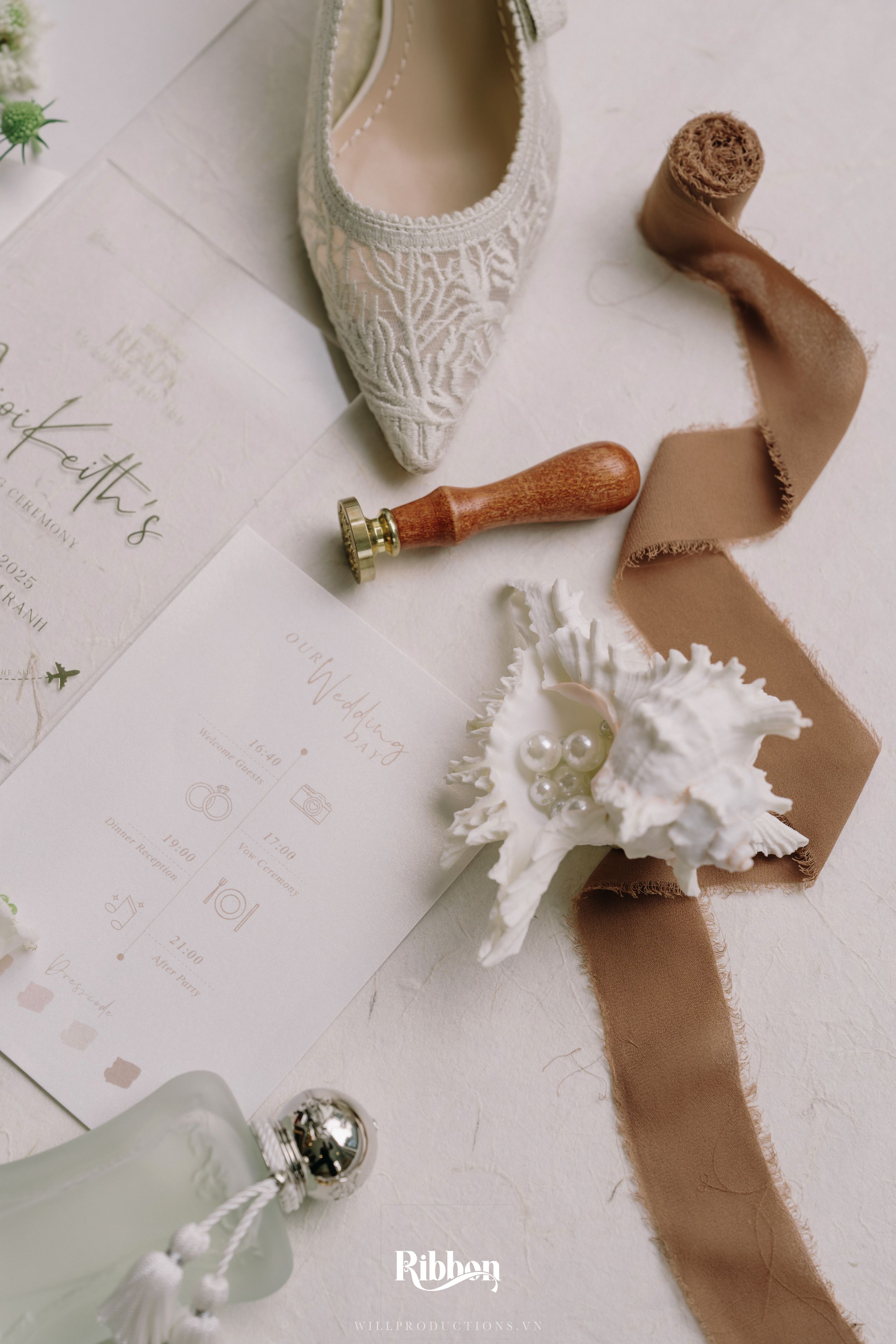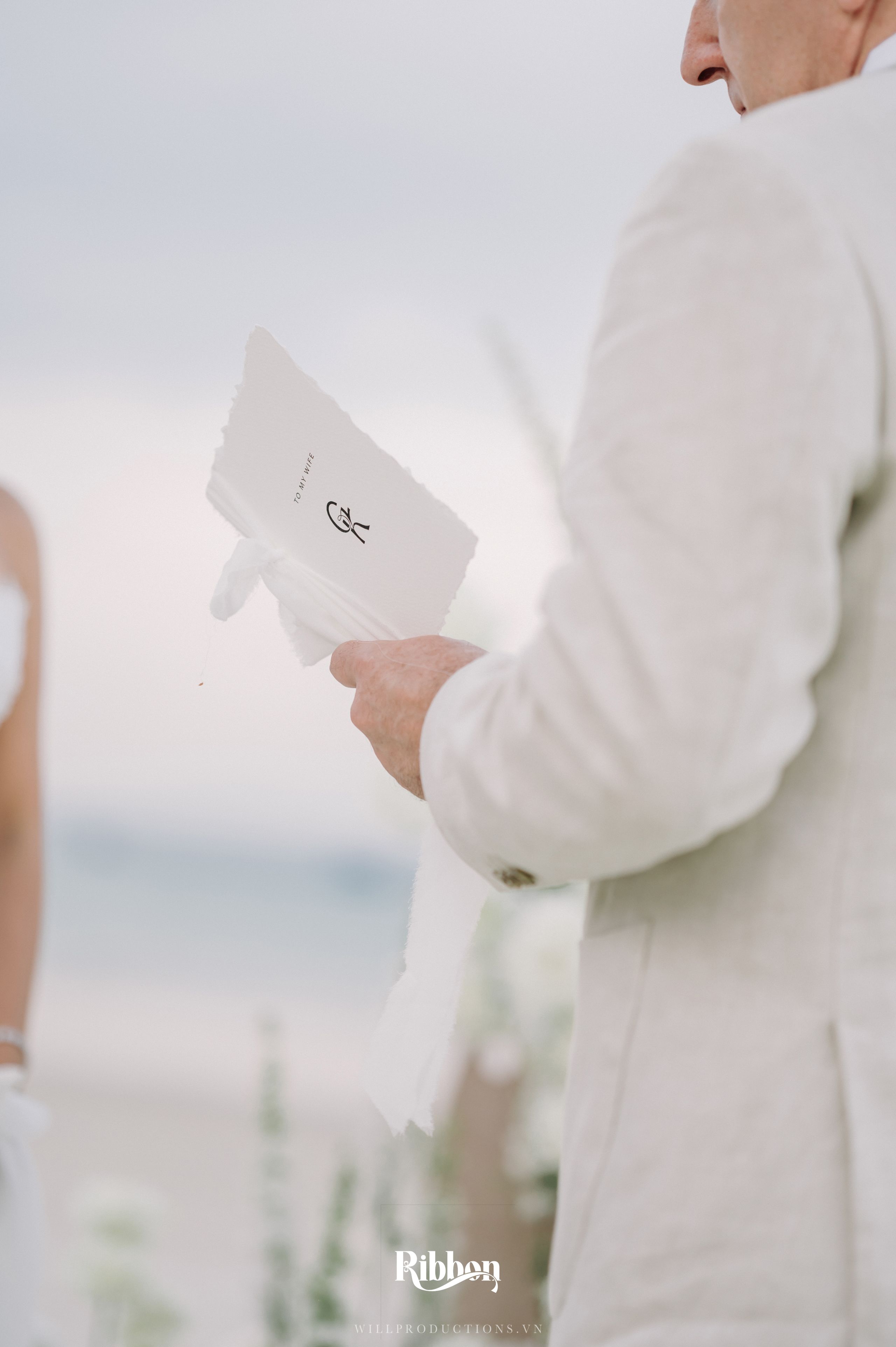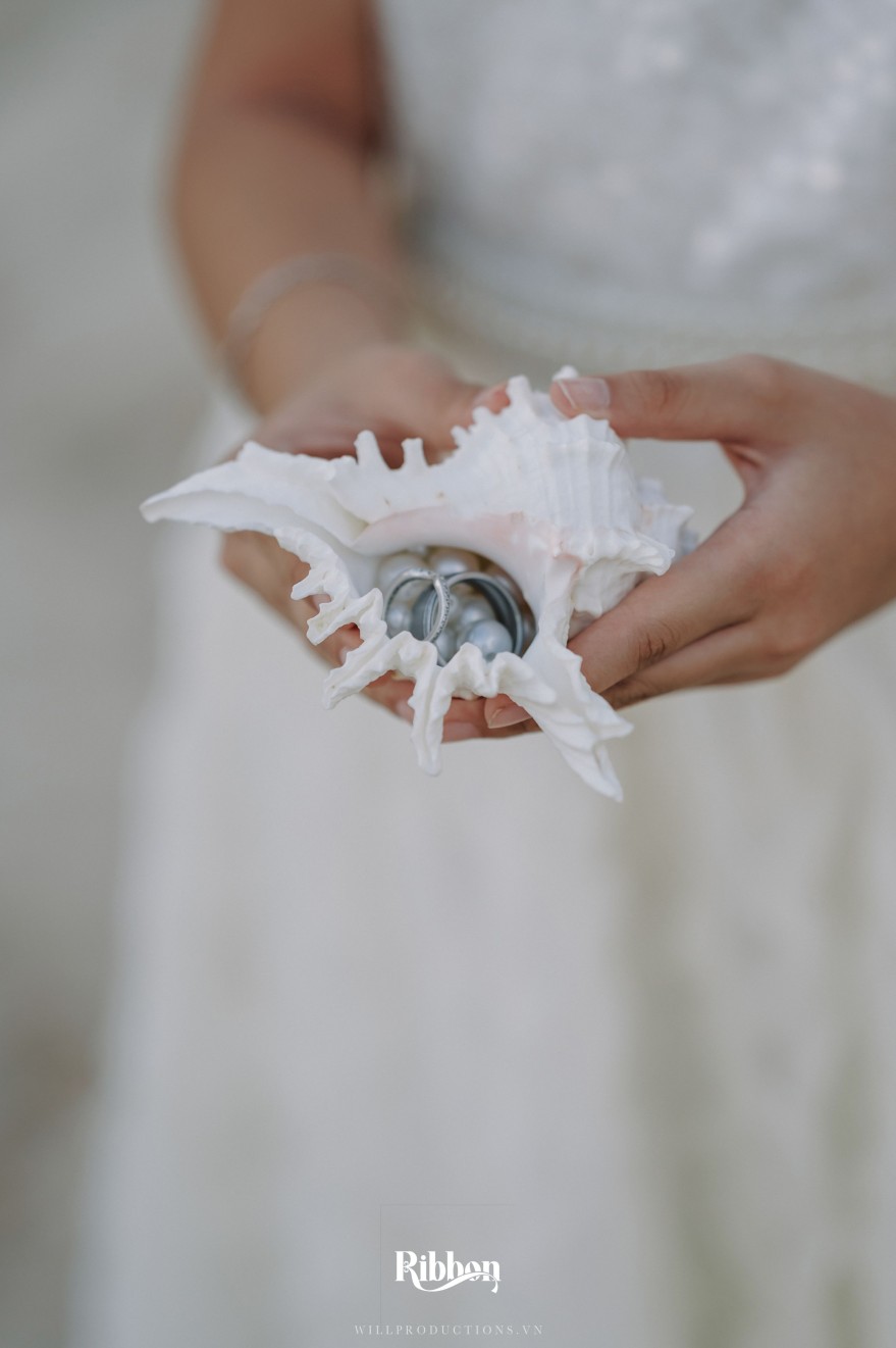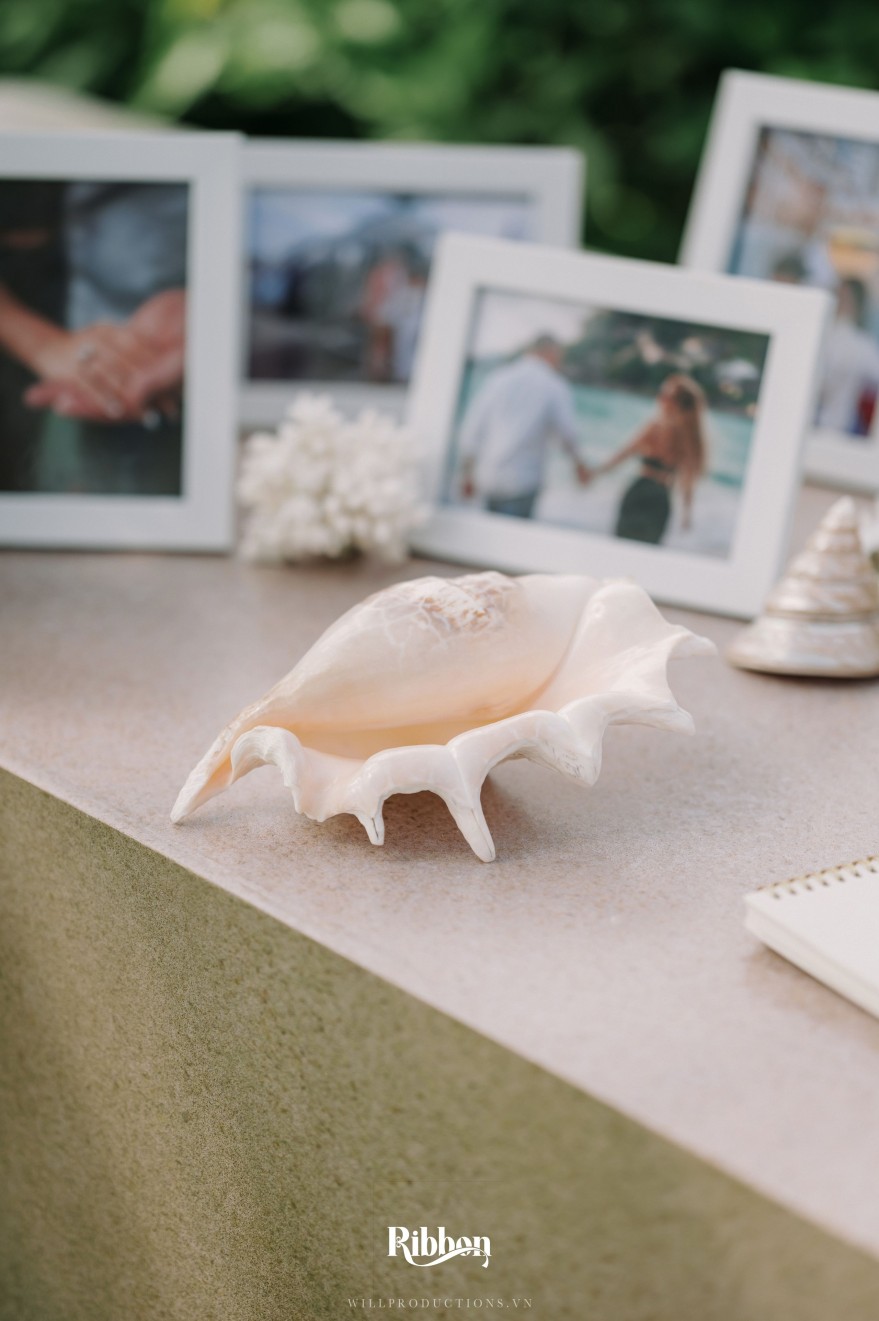 - Love story: Nếu từng một lần lắng nghe tiếng vỏ ốc, chắc hẳn bạn sẽ hiểu vì sao biển luôn gợi nhắc đến những điều bí ẩn, dịu dàng và đầy mê hoặc đến thế. Đó cũng chính là nguồn cảm hứng để chúng mình gửi gắm vào lễ cưới vows ceremony của GiGi & Keith – một câu chuyện tình yêu nên thơ bên biển Cam Ranh, dưới concept đặc biệt mang tên "La Mer Murmure".