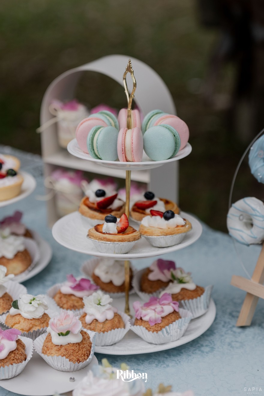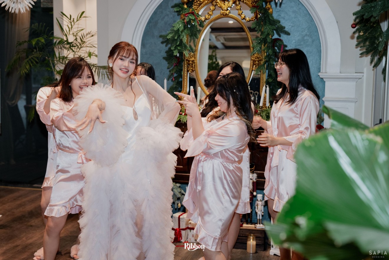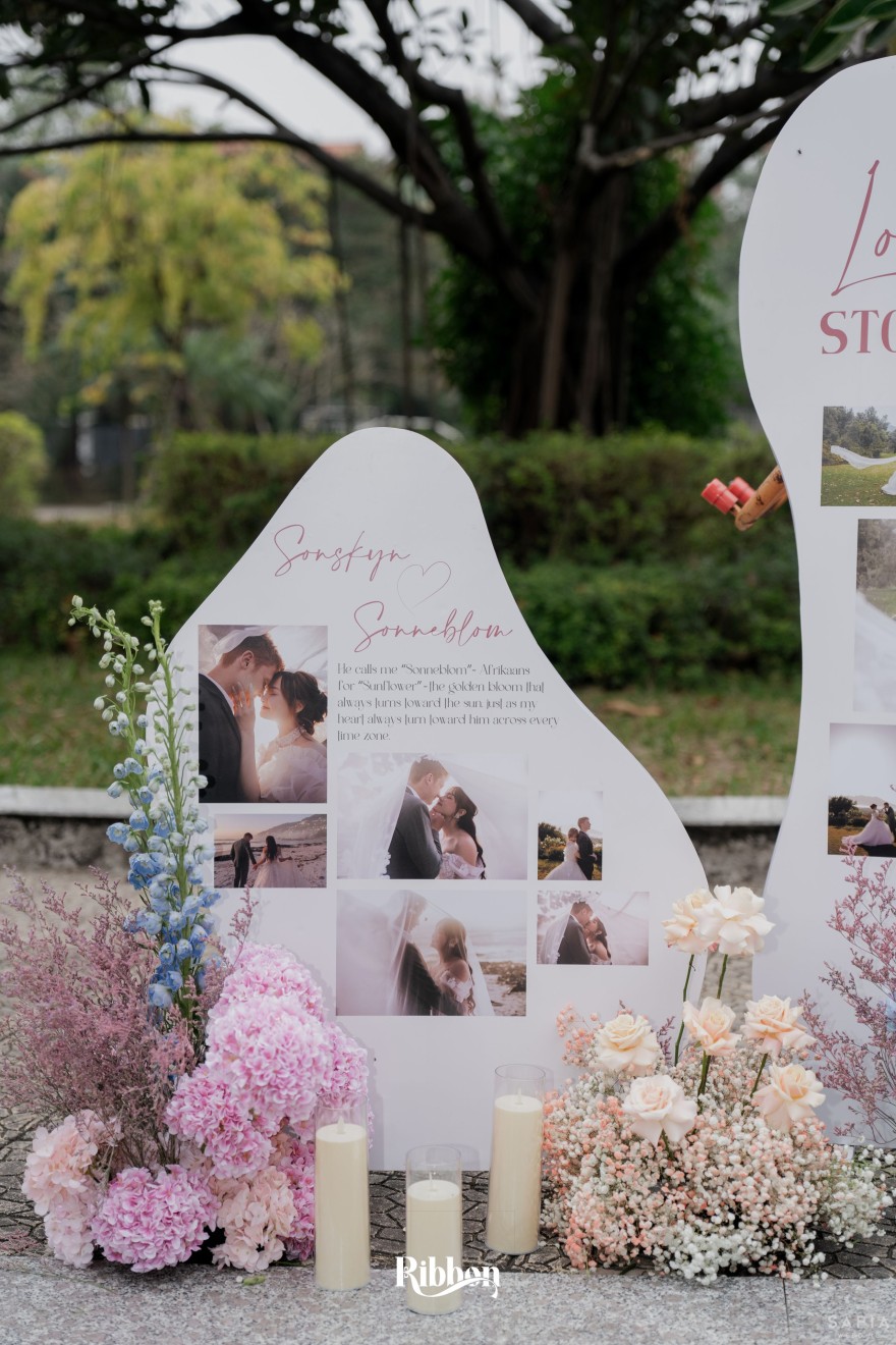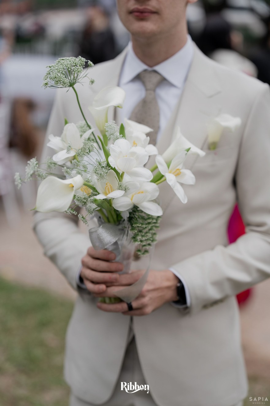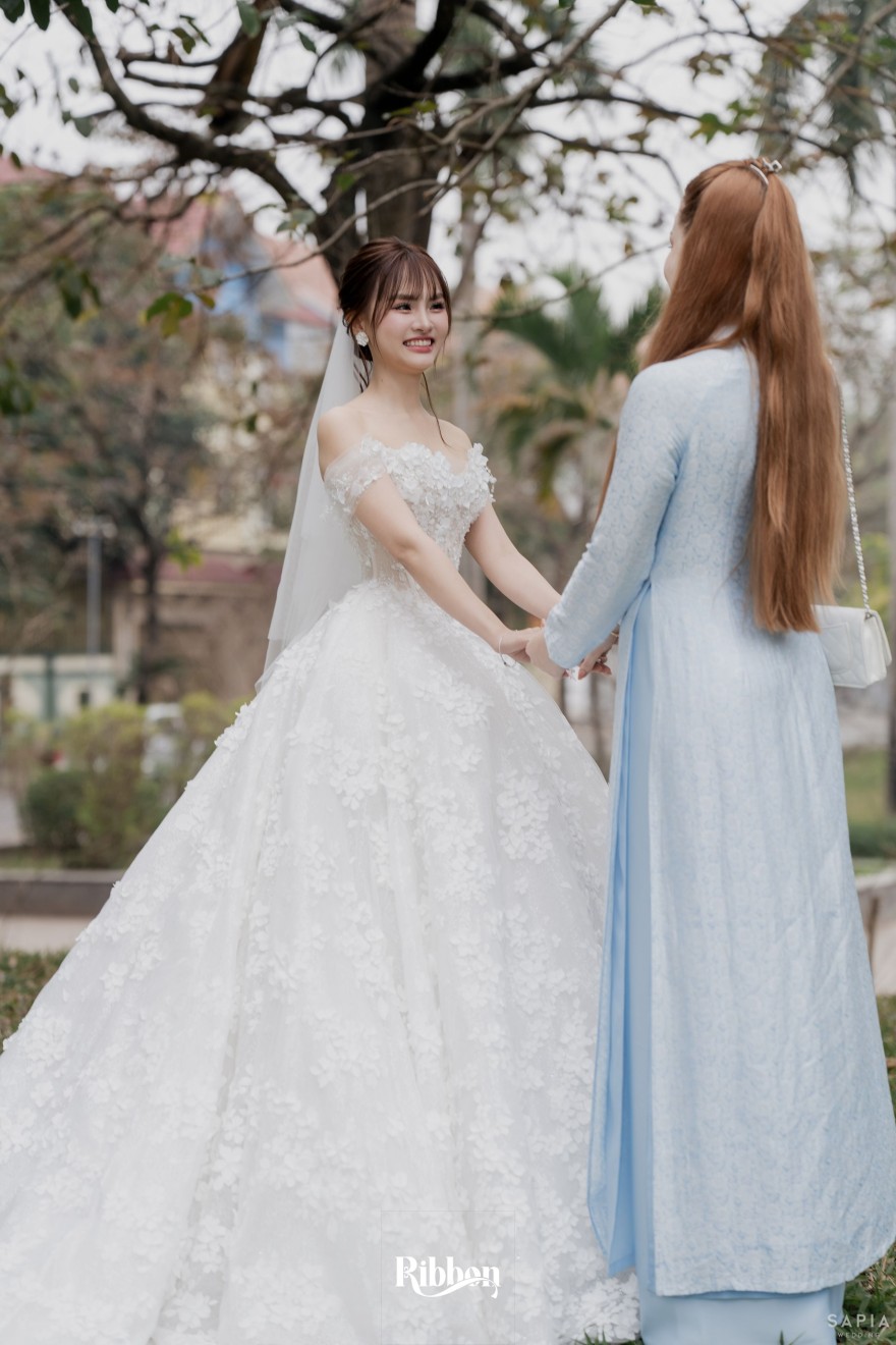 - Love story: Ánh xanh dịu không phải là màu xanh rực rỡ, mà là sắc xanh của sự tin tưởng, của bình yên, của một tình yêu đã đủ trưởng thành để không cần nói quá nhiều. Loài hoa chủ đạo của concept Delphinium xuất hiện một cách đầy dụng ý. Trong ngôn ngữ hoa, delphinium tượng trưng cho sự chân thành, bảo hộ và một tình yêu được chúc phúc. Những nhành hoa vươn cao, mảnh mai nhưng kiêu hãnh, như chính cách Linh & Mathew bước vào hành trình hôn nhân, dịu dàng, tin tưởng và luôn hướng về phía nhau.