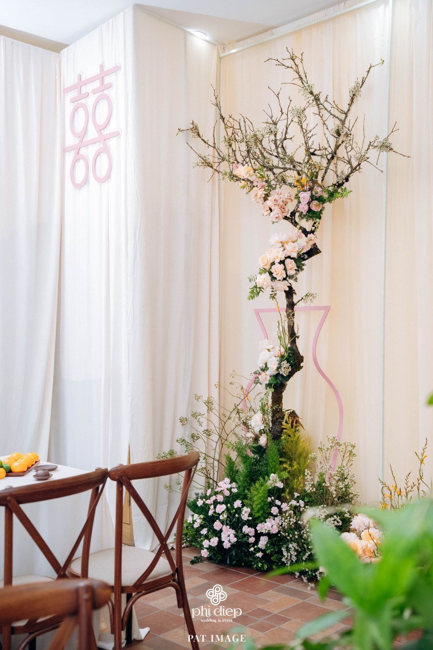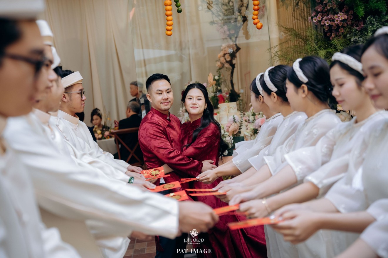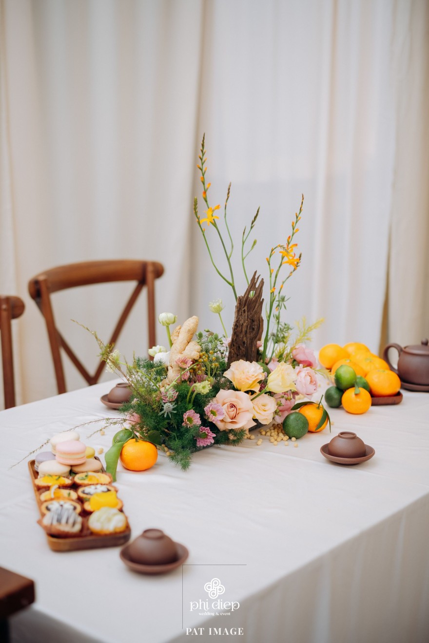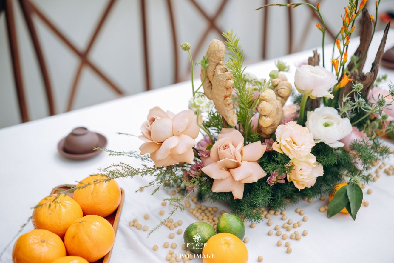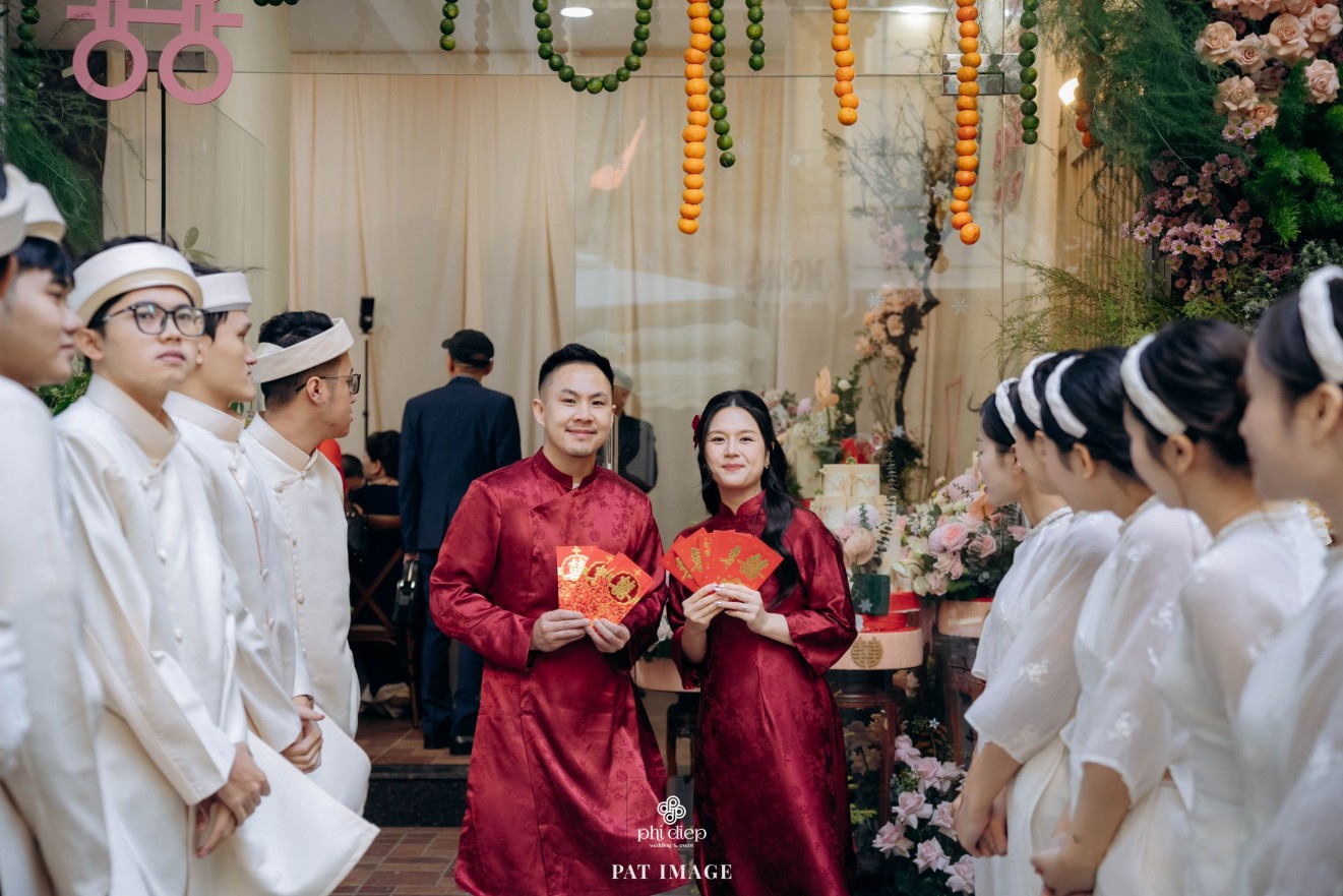 - Love story: “Mộc Thổ Tinh Hương" - cái tên nghe giản dị mà đủ đầy, gợi lên hơi thở của gỗ, của đất và của hương hoa thanh nhã. Những yếu tố tạo nên nét đẹp truyền thống Bắc Bộ nhưng vẫn giữ tinh thần tối giản, trang trọng và hiện đại. Mộc là nét mộc mạc của gỗ thô, của những đường vân không mài giũa, tượng trưng cho sự chân thành của tình yêu và nếp nhà. Thổ là màu của đất, nơi thanh sạch và bền vững, nơi mọi cội nguồn đều bắt đầu, cũng như nền tảng mà hai gia đình đã vun đắp để đôi trẻ được đứng bên nhau ngày hôm nay. Còn Tinh Hương là hương sắc trong trẻo lan nhẹ trong không gian, là vẻ đẹp thanh tân của lễ nghi, là lời chúc cho cuộc sống chung sẽ luôn êm đềm như buổi sáng đầu xuân.