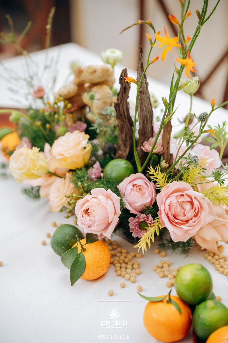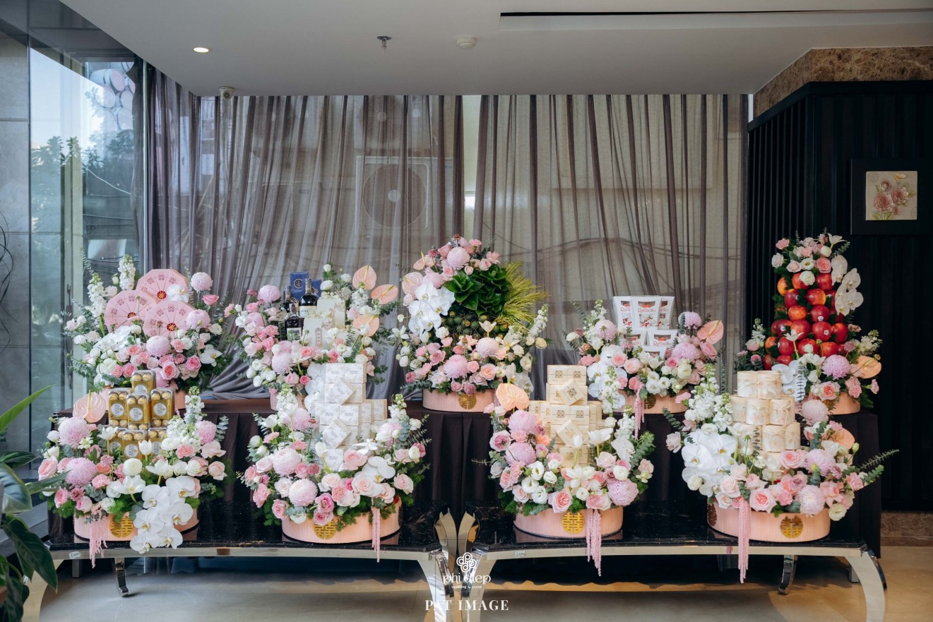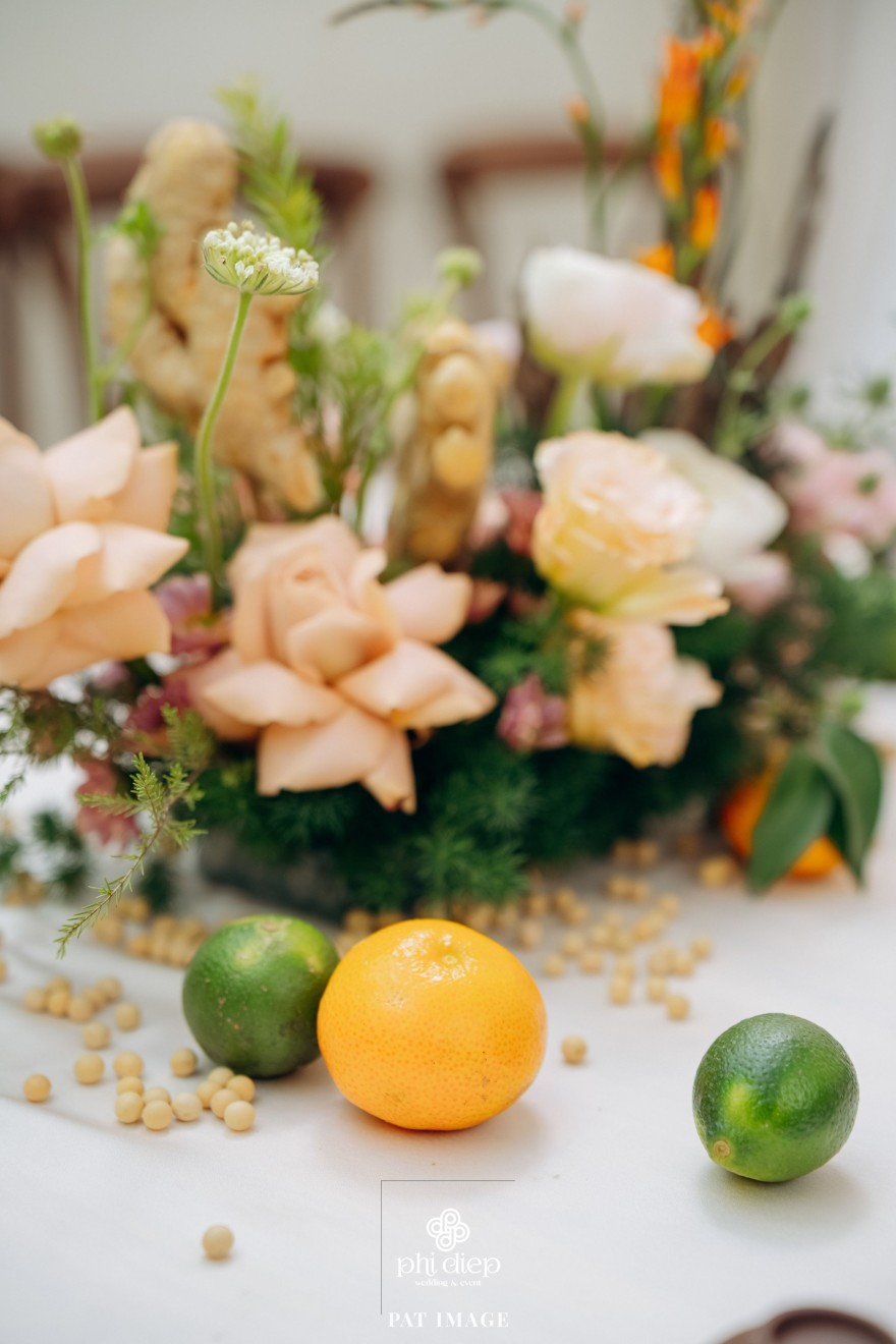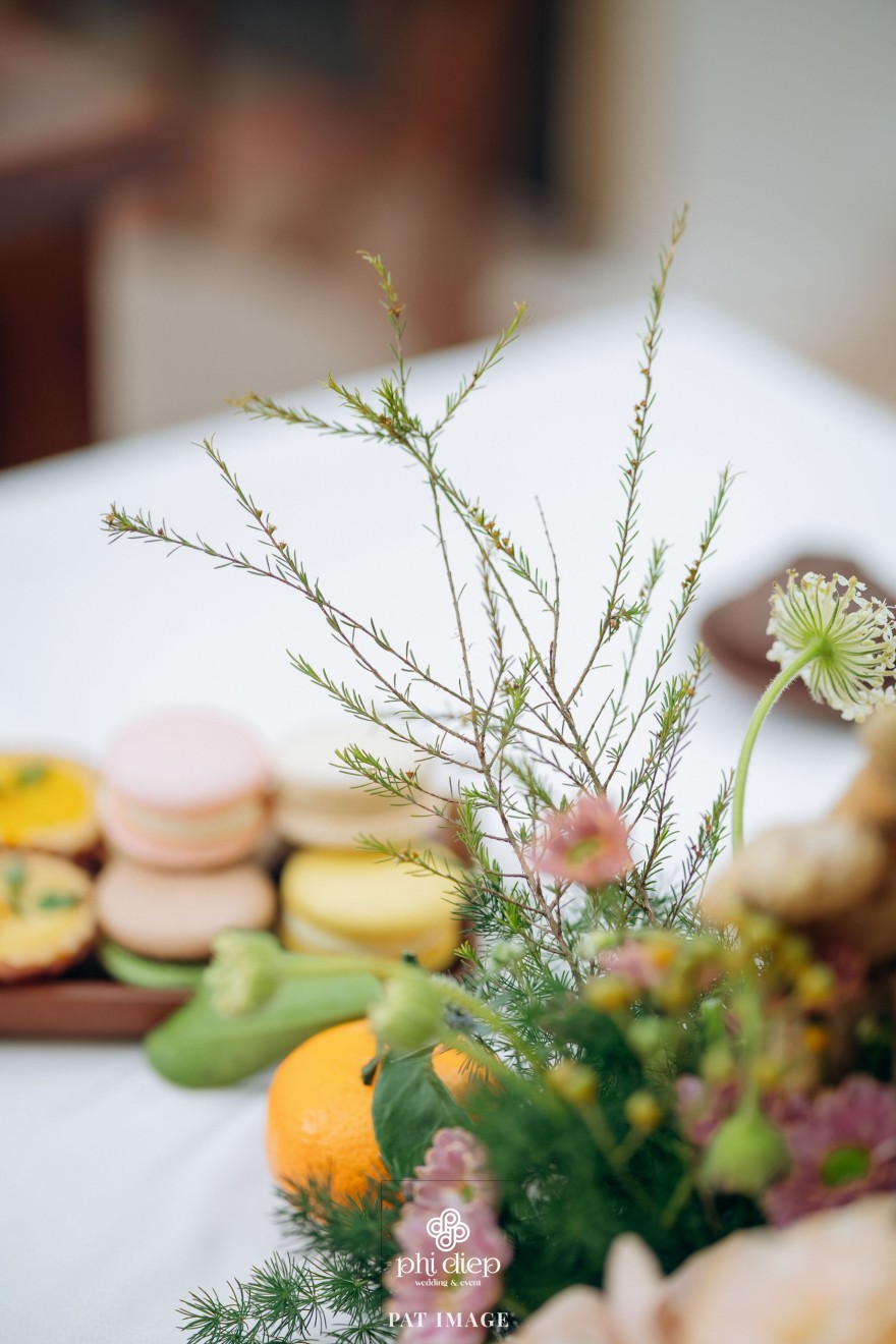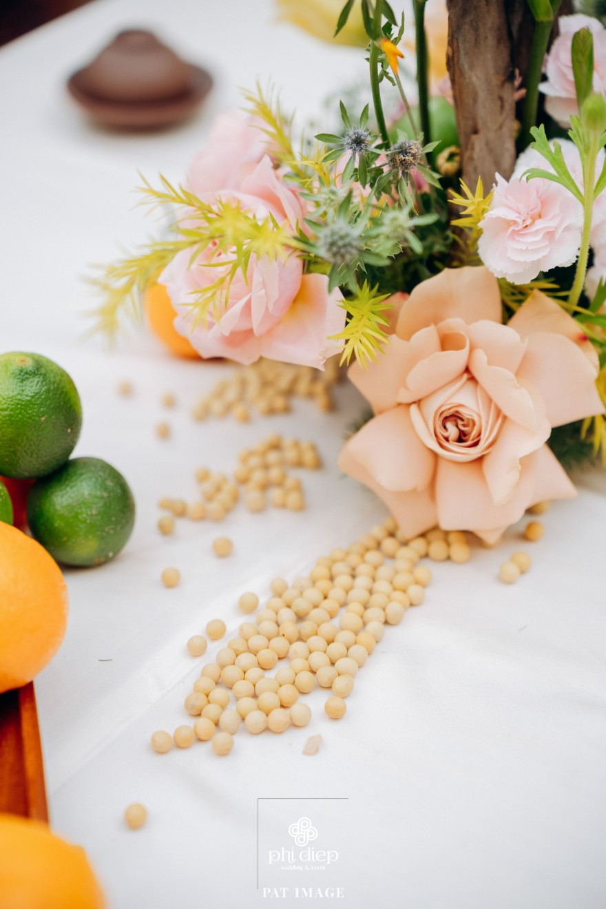 - Love story: “Mộc Thổ Tinh Hương" - cái tên nghe giản dị mà đủ đầy, gợi lên hơi thở của gỗ, của đất và của hương hoa thanh nhã. Những yếu tố tạo nên nét đẹp truyền thống Bắc Bộ nhưng vẫn giữ tinh thần tối giản, trang trọng và hiện đại. Mộc là nét mộc mạc của gỗ thô, của những đường vân không mài giũa, tượng trưng cho sự chân thành của tình yêu và nếp nhà. Thổ là màu của đất, nơi thanh sạch và bền vững, nơi mọi cội nguồn đều bắt đầu, cũng như nền tảng mà hai gia đình đã vun đắp để đôi trẻ được đứng bên nhau ngày hôm nay. Còn Tinh Hương là hương sắc trong trẻo lan nhẹ trong không gian, là vẻ đẹp thanh tân của lễ nghi, là lời chúc cho cuộc sống chung sẽ luôn êm đềm như buổi sáng đầu xuân.
