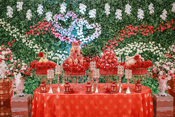 Không gian bàn tiệc ngày lễ ăn hỏi[/caption]