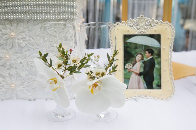 Không gian cưới được trang trí cẩn thận và tỉ mỉ từ những chi tiết nhỏ