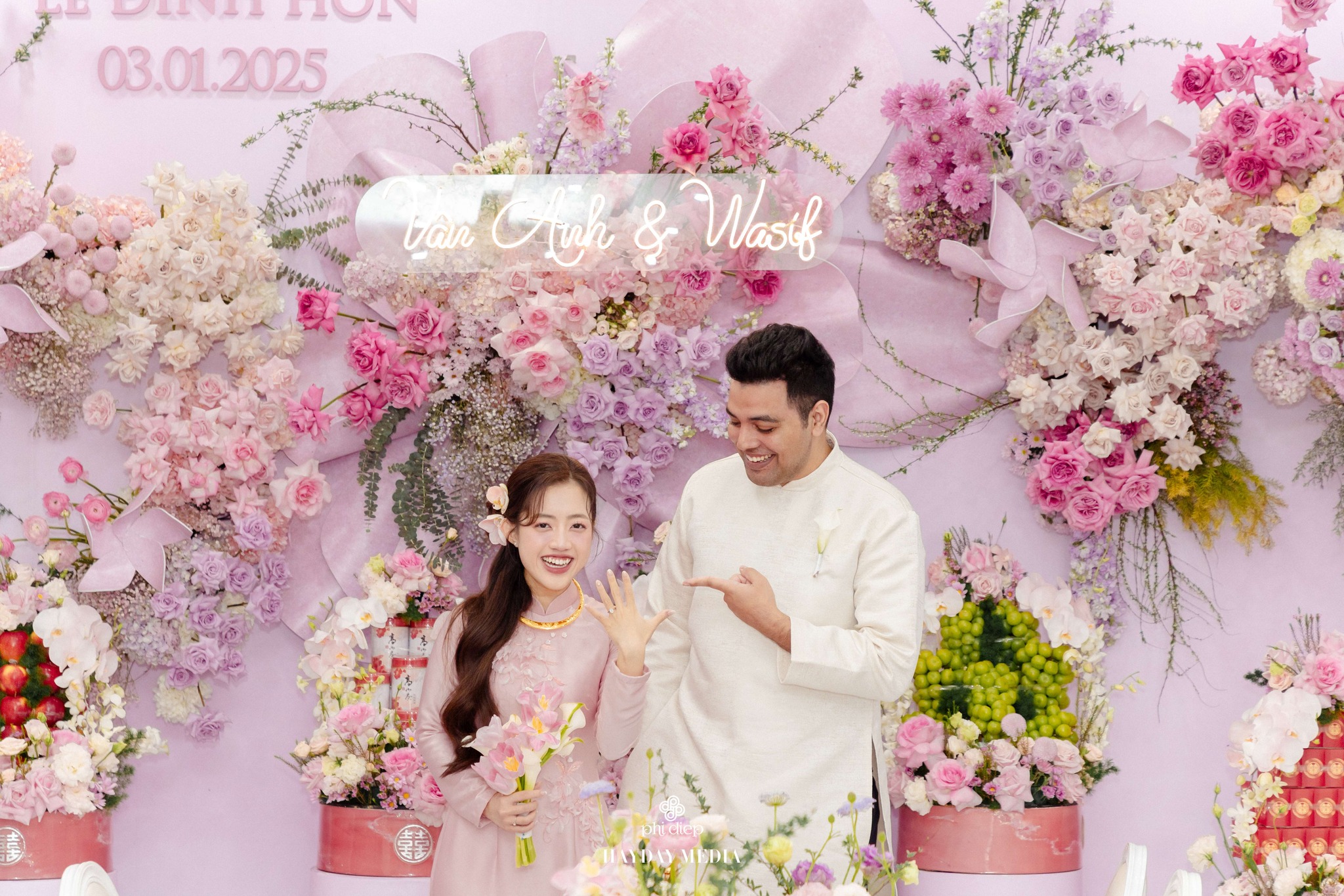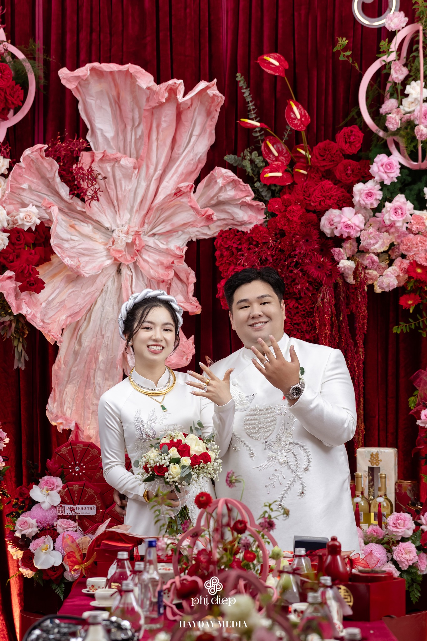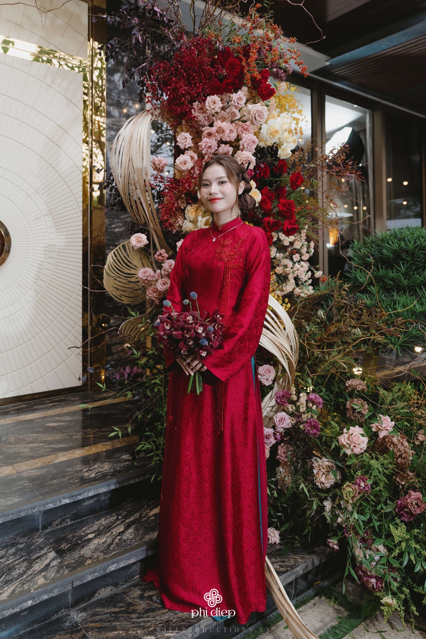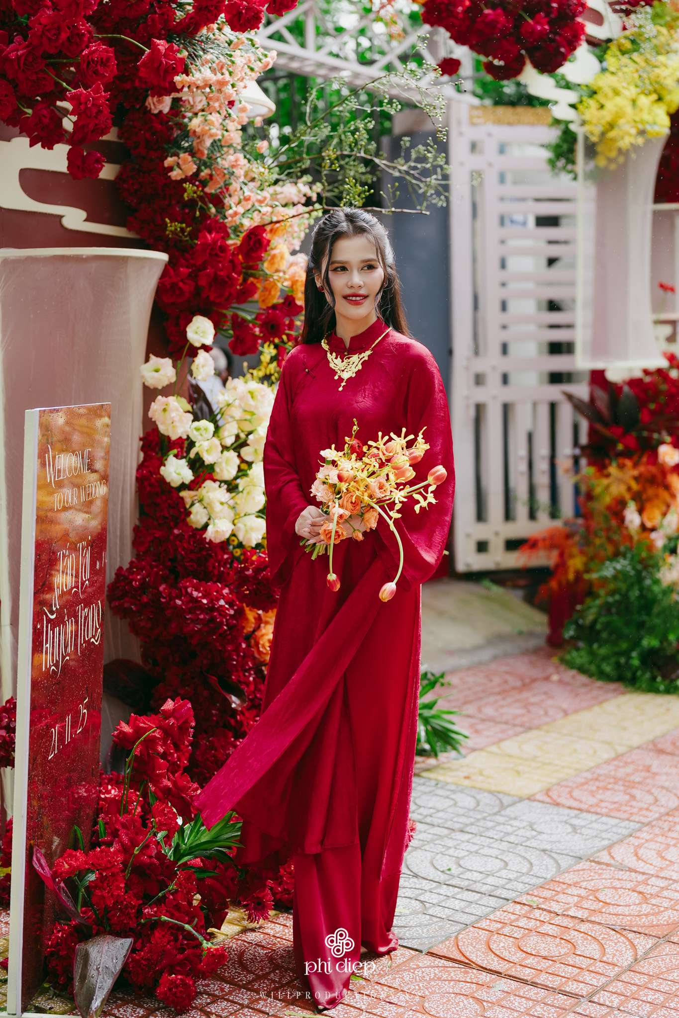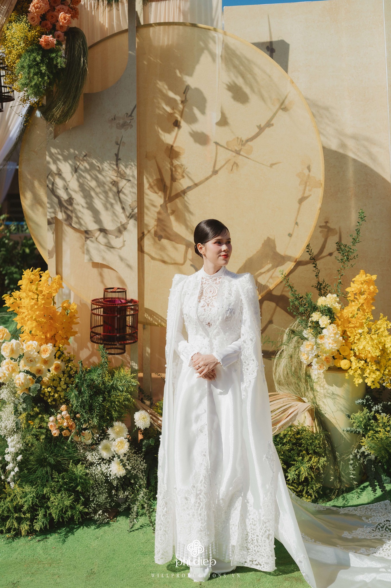 Màu sắc áo dài nên hài hòa với không gian trang trí tiệc cưới (concept) và tông da của bạn.