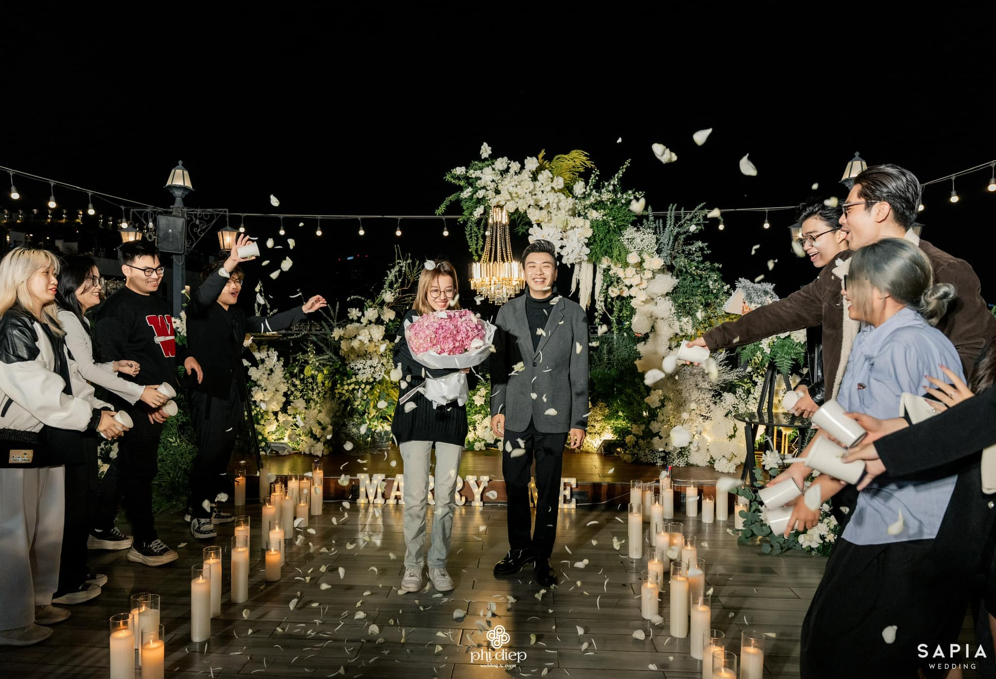 Giữa không gian thành phố rực rỡ ánh đèn, một màn cầu hôn trên rooftop luôn mang lại cảm giác vừa hiện đại, vừa đầy chất "điện ảnh". Khi mọi thứ phía dưới dần trở nên xa xôi, chỉ còn lại hai bạn giữa bầu trời và những vì sao, đó chính là thời điểm hoàn hảo để nói lời yêu thương trọn đời.